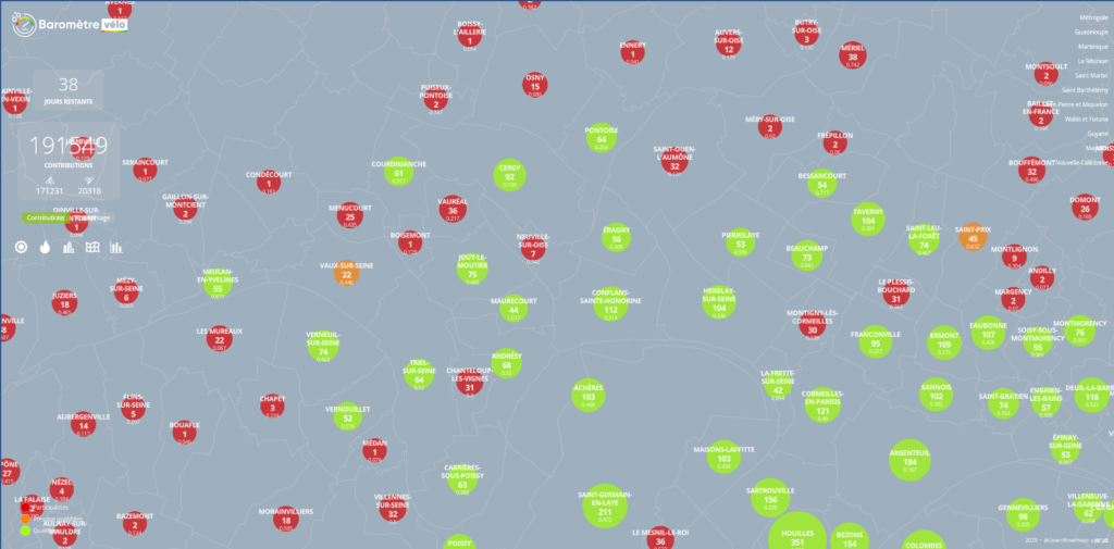 Plusieurs communes sont qualifiées dont Conflans, Andrésy, Maurecourt, Courdimanche, Triel, Carrières, Éragny, Achères, Poissy, Cergy, Jouy-le-Moutier et Pontoise !
