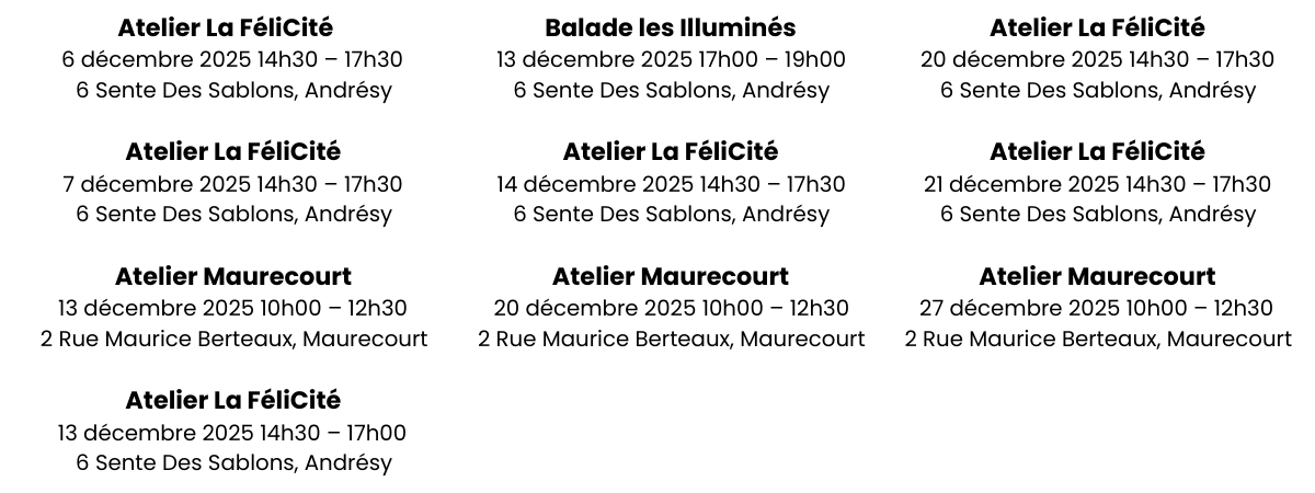 Atelier de Maurecourt 👉 Fermeture le samedi 6 décembre.